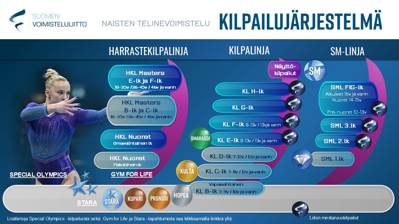 Naisten telinevoimistelun kilpailujärjestelmään voi tutustua tarkemmin täältä.