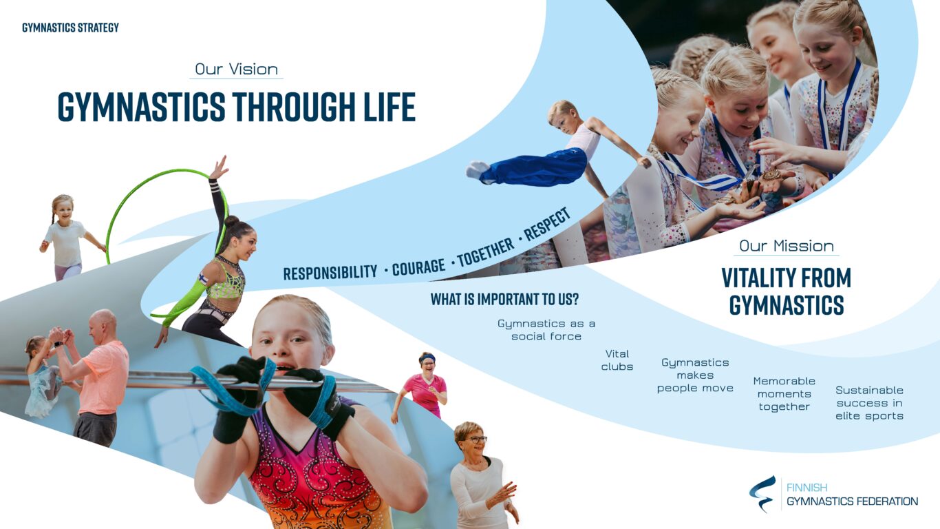 As a federation, we support clubs and promote the position of gymnastics as part of Finnish sports culture and wellbeing, creating vitality throughout Finland.